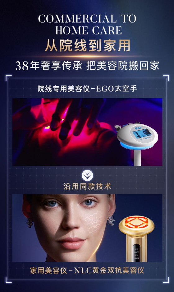 随着射频美容仪谢幕,家用美容仪行业迎来了技术革新的关键时刻。面对消费者对健康和美丽的不断追求,家用美容仪市场的需求依然强劲。随着年龄的增长,皮肤会出现自然老化现象,如皱纹、松垮等。这些变化不仅影响外貌,还可能影响女性的自信和心理健康。因此,为了给消费者提供更可靠和高效的家庭美容护理解决方案,源于意大利米兰,38年探索抗龄的NLC再次展现了在科技创新和产品开发方面的领先优势。